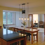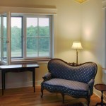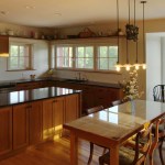 The house answers the requirement that the home should look like it had always been there, an ageless quality with efficient use of space. The 2000 square foot house has three bedrooms and two full baths on first floor designed for aging in place. The second floor includes a small library with built-in shelves for favorite books and lovely views to the north of the property, a main bedroom, a bedroom space used as an office, and a generous main bath with quality cabinetry and tile work to complement the first floor aesthetics.