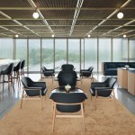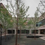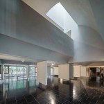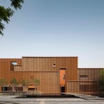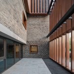 Drawing inspiration from its context, the architecture combines traditional northern architecture with contemporary architectural language and transforms into a new interpretation of architectural expression. The building quietly rises out of the water as a brick mass with carved out spaces for programs interlocked with gardens that blur the boundary between inside and outside. On the façade, warm-toned wood pattern aluminum panels form a veil that softens the heaviness of the brick facade. Moments of the screen connects with each interior space, creating a façade that is spontaneous and different on every face. In terms of materiality, traditional gold brick tiles form the foundation of the building mass, extending from exterior landscape into the interior “in-between” spaces. With brick and wood panels as the primary backdrop for the interior, a common theme throughout the interior is the sculpted ceiling.
