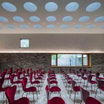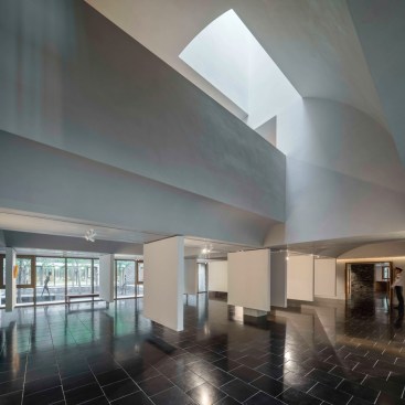Junshan Cultural Center is located just outside of Beijing in the midst of the undulating mountain ranges and meandering rivers near the Miyun Reservoir. Originally just a typical two-story sales building on the outskirts of Beijing, Neri&Hu was asked to transform this donut-shaped building into an iconic clubhouse and sales center. Neri&Hu took advantage of the existing courtyard typology by crafting two sequences of interlocking journeys, one for clubhouse member, and one for sales center guests. All programmed spaces are designed such that they are in proximity to nature. The layering of the primary courtyard and smaller gardens allow the architecture to merge harmoniously with nature.