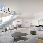 The spaces for daytime activities occupy the ground floor, which also encompasses a guest room and a separate office. The bedrooms, enjoying spacious terraces with stunning views of the city, are located on the upper level.