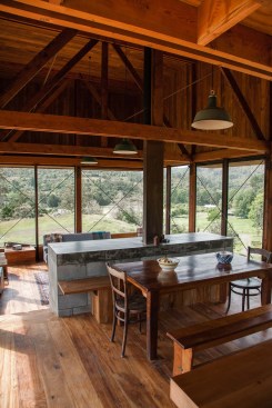 The clients brief called for a response which engaged with the site in both a filmic as well as practical way, they live a life of self-sufficiency while on the land, including growing, animal husbandry and butchery. The clients spoke of materials that have a patina of age, of sustainability, of recycling and adaptive re-use, of provenance of materials.