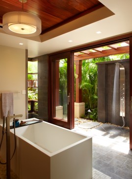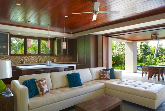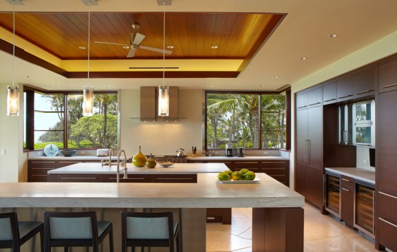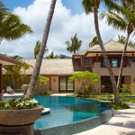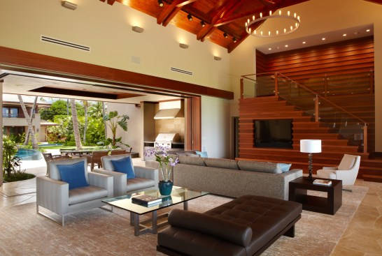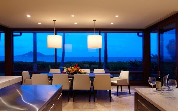 This residence, approximately 9,000 square feet on two oceanfront lots in Kailua, required design and construction of a new single family home. The design concept is “Hawaiian Ranch” style, which blends into its surroundings yet maintains a fresh, up to date feeling. It reflects a strong indoor-outdoor relationship and features a courtyard, buffered from the onshore winds.