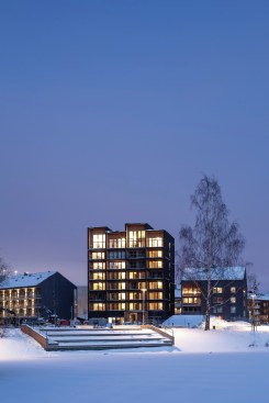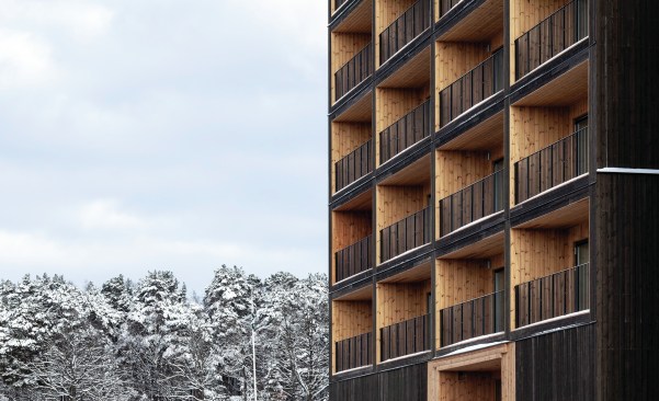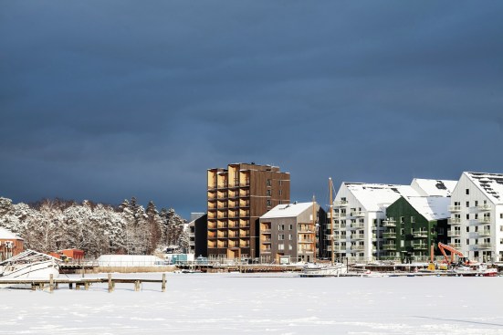 The neighborhood includes amongst other things a 9-storey apartment building constructed with a frame made entirely of massive wood. The load bearing walls, beams and elevator/stairwell shafts have been built with cross-laminated wood. With renewable and sustainable timber construction, the quarter manages to have a positive impact on the environment and in time the overall life-cycle perspective. Research shows clear health benefits and qualities for people living in homes with wooden frames. Kajstaden is one of the tallest buildings in Sweden with a solid wood frame and the ongoing construction process clearly shows the advantages of building with modern wood technology. C.F. Møller Architects is developing the project in close collaboration with Slättö Förvaltning and Byggbolaget.