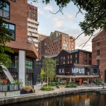 KAMPUS is a new neighbourhood located at the former Manchester Metropolitan University campus in the heart of the city. Utilising the qualities of the existing built structures – Victorian brick canal-side warehouses and the 1964 concrete tower – presents the opportunity to develop at the city block scale, creating new connections and a new destination.
