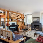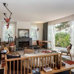 The living room is designed in two sections; one step elevated seating area to embrace the beautiful view and the garden which also hosts the traditional way of dining on sini (coffee) table ,and the music corner in front of the fireplace. The continuous bookshelf connects both spaces.