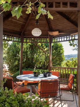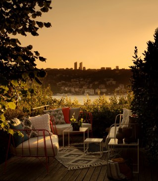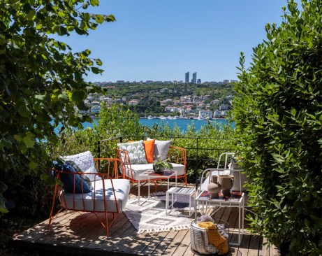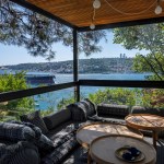 The garden provides a few different seating area options. A glass covered all season seating area, a wooden deck over Bosphorus, and a dining area under the vine.