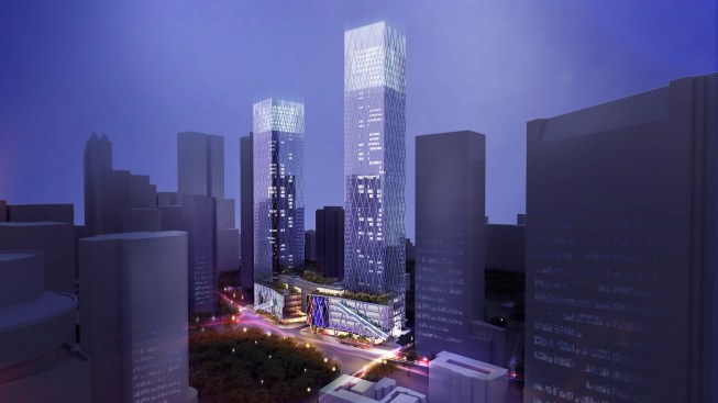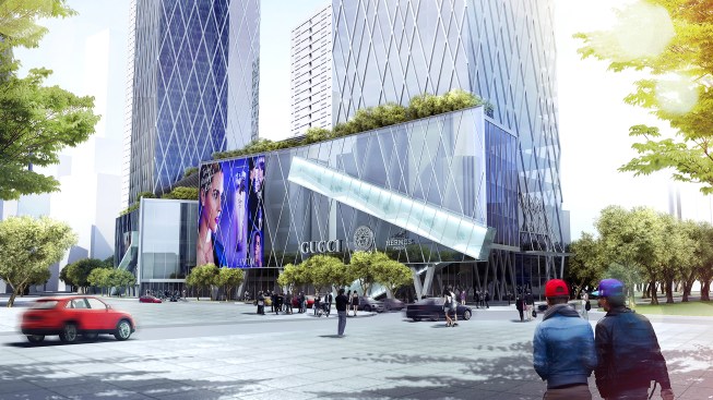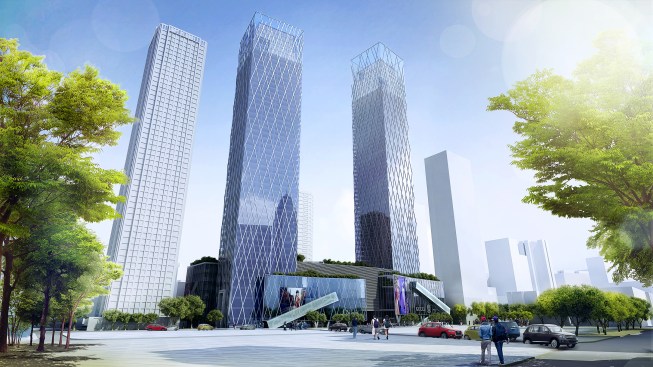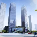 The Kangde Center boasts a maximum density totaling 131,000 sq. meters. The 46 and 54-story towers rise to 286 meters and are connected at the base with a 7-story building that serves as a plinth. Hotels, residential units and office space occupy the tower buildings with commercial and retail at the lower levels. 18 floors of subterranean parking are provided.