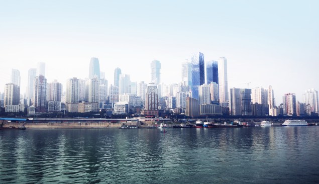The lower levels of the building respond to various local conditions and are prominently integrated into the urban fabric of the vital city center. Seen from afar, the towers have a dynamic, iconic presence within Chongqing’s city skyline