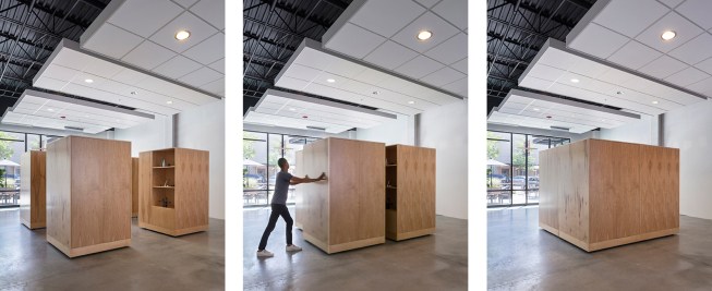 Originally designed for a retail pop-up, these objects achieve functions of storage, display, and spatial delineation. The client store specializes in the sale of small objects. In its very large temporary space, the client needed a way to display these objects that would entice customers to examine and purchase them. The overwhelming size and relative emptiness of the space needed to be addressed with a very small budget.