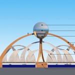 Fifth, our design will create great imagery, and provide great views from both the Kaohsiung city and from the ocean. It will also provide great advantage points for views to the Kaohsiung city, the harbor, and the ocean. We achieve this goal by provide advantageous, high viewing points in various spaces, for example, the roof top gardens on top of the Large Performance Hall and the Small Performance Hall provides great and advantageous viewing points for views to the Kaohsiung city, the harbor, scenic pearl shape restaurant on site, the amphitheater on site, and the ocean. The scenic pearl shape restaurant on top of the connecting bridge also provides advantageous viewing points for views to the Kaohsiung city, the harbor, the performance halls on site, the amphitheater on site, and the ocean.