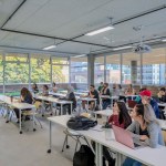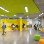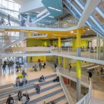 Centered around a five-story glass atrium that is animated with activities, the School of Business benefits from a diverse program. By arranging a variety of spaces – informal meeting and study areas, gardens, classrooms, business incubators, student spaces, faculty and administrative offices and retail – to maximize communication and connectivity, the project promotes an inclusive attitude toward learning. Flexible, student-focused informal learning spaces are evenly distributed throughout the building to act as social anchor points helping to elevate the space beyond a transitional corridor and create a pedestrian-friendly space for students and the greater University community.