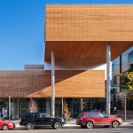 Located in downtown Portland, the new Karl Miller Center is uniquely integrated with the city’s rich network of public open spaces and diverse urban uses. Questioning the full-block archetype that dominates the typical 200' x 200' city block of Portland, the building design appears as two distinct structures sharing a city block – the renovated existing building, a 100,000sf 1970's structure retrofitted with a metal panel facade system broken up by an irregular composition of punched windows, and a new dynamic, shifting 45,000sf addition, clad in regionally sourced Alaskan Yellow Cedar. This approach, coupled with a series of terracing external green spaces and new circulation pathways linking the urban center, local parks, transportation stops, and nearby campus buildings, enhances the public realm by providing a more diverse streetscape. A one-story grade differential between 6th Avenue and Broadway, populated with public oriented spaces, creates two ground levels, further activating the exterior plazas and the atrium and heightening the activity within and around the building.