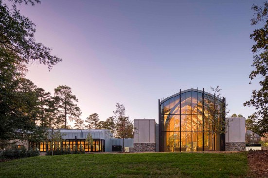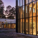 Wood was used inside and out as structural and finish elements to enhance the connection between the built and natural environment, stressing Duke’s long history as a biophilic university. The visible interior makes the institutional welcome warm and inviting.