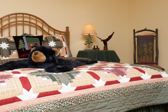 Cozy, woodland-styled bedrooms; fully equipped spa baths; and multiple conversational-seating arrangements are all examples of how Michelle designed the home for both form and function. She also added entertainment space provided by an outdoor, country-esc porch for hosting visitors on weekends and holidays.