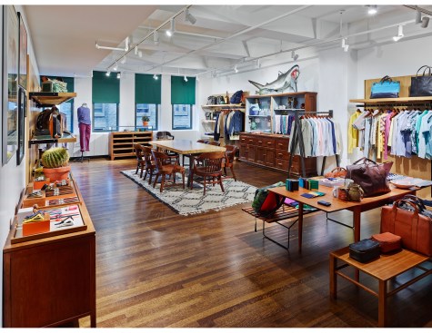 Walking into Jack Spade is an aesthetic jump back in time. A found wooden door and large dining table provide an unexpected, yet comfortable setting for the light-hearted personality traits Jack and Kate share.