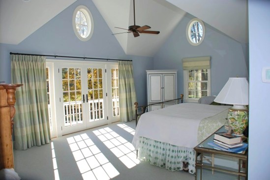 Phase 3 was completed in 2010; the existing 2 car garage was removed and a two story, 3 car garage addition was built in its place with a master bedroom suite above, along with an additional bedroom & bathroom. The master bedroom was designed as a light-filled room with a cathedral ceiling, a fireplace and 12′ wide french doors leading to a curved mahogany-decked balcony.