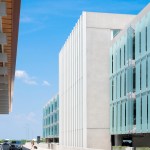 The parking garage also contributes to the overall KCI Airport complex’s achievement of LEED BD+C NC (New Construction) Gold Certification. The garage incorporates a 168 kW array of photovoltaic solar integration on the south facade of the garage, concrete carbon reduction strategies, and support of an all-electric bus fleet.