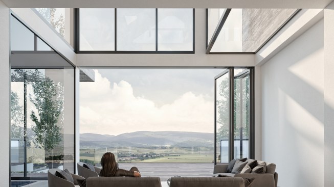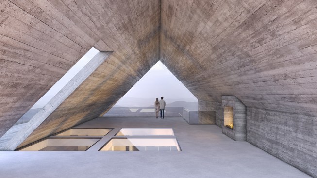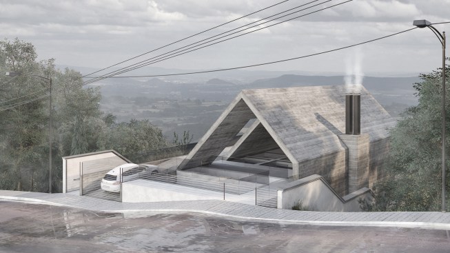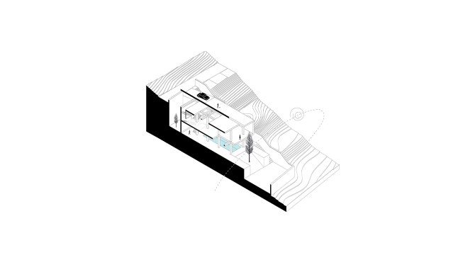 After that we justified the roof with the street level and you enter the villa from the roof. other design elements like the sloping roof and the chimney added in an abstract way in order not to interfere in the landscape, celebrate privacy, provide unique views from inside and also being generous and humble to the environment.