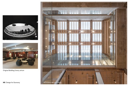 Leaders of the Harris School of Public Policy sought preservation and restoration of a midcentury masterpiece for their new home on the University of Chicago’s south campus. The Commission on Chicago Landmarks identified the Edward Durell Stone design in 1963 as contributing to the historic district of the Midway Plaisance—the spine of the 1893 Columbian Exposition. The transformational redesign integrates policy-inspired solutions to better connect with the community, place policy on display, and serve as an exemplar in sustainable design with LEED Platinum and Living Building Challenge Petal certifications.