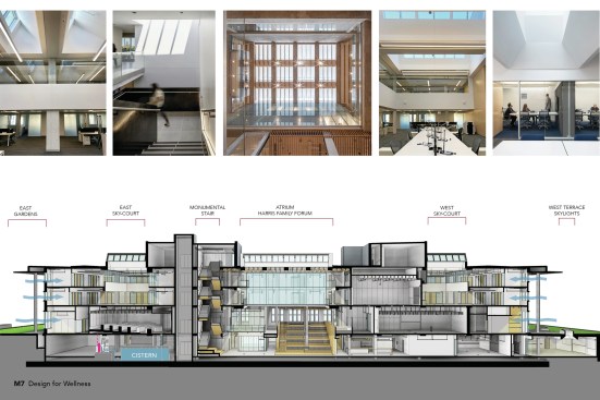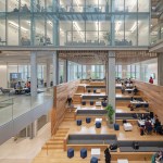 Douglas Farr, FAIA, president, Farr Associates: The existing [Edward Durell Stone–designed] building was a big, dark battleship with low ceilings and limited natural light at the perimeter. It’s the size of a soccer field, so we knew we had to carve into it. We also wanted to create the greenest building on the University of Chicago campus and among public policy schools in the country. We looked at the Living Building Challenge and concluded that we weren’t going to be able to match goals in energy or water. So we pursued the LBC Materials Petal certification.