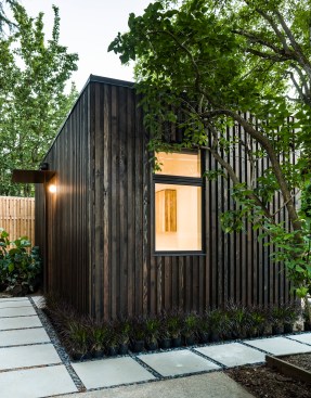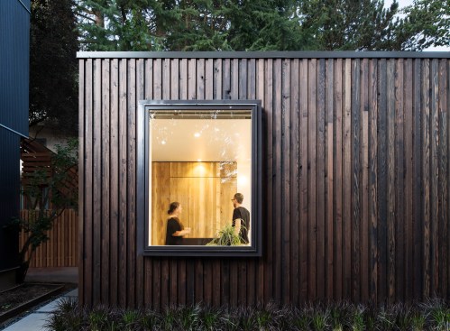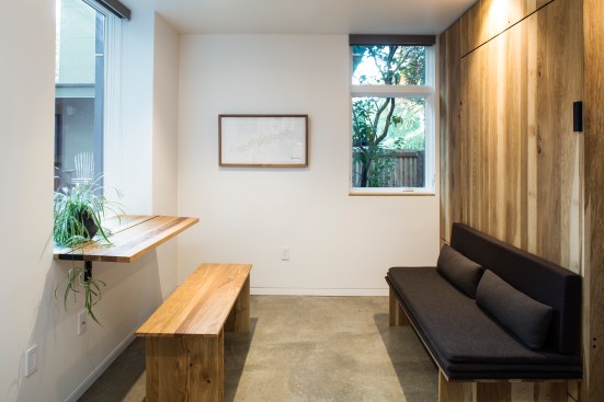 This fir clad, ground up Accessory Dwelling Unit (ADU) meets the City of Portland’s stringent design standards without sacrificing personality and presence. The modern, minimalist interior includes custom Oregon white oak cabinetry fabricated by FIELDWORK, generous natural light, and a custom Murphy bed/storage unit.