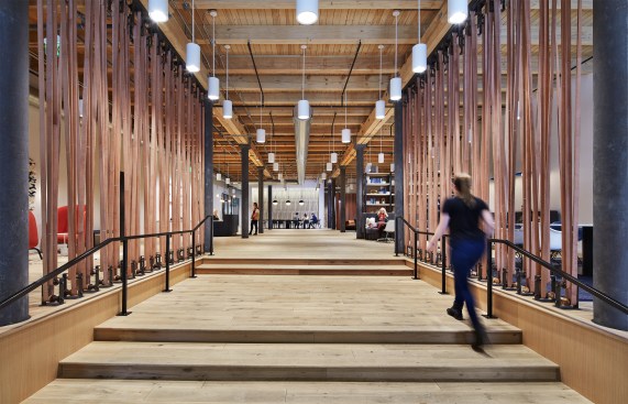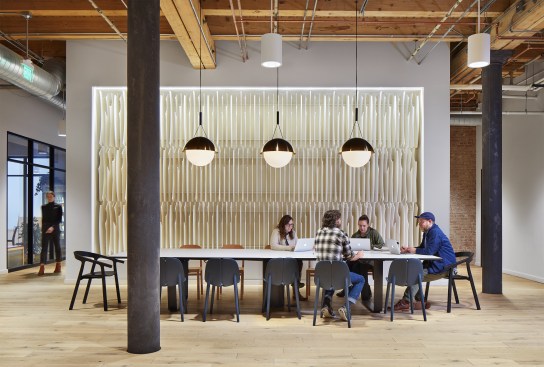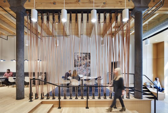 The new design sets a precedent of revitalization in the area by weaving the best of Kickernick’s past with today’s modern workplace. Custom features like a woven leathers screen and a custom felt panels speak to the historic story of the building.