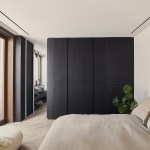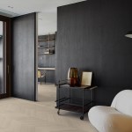 Working with the existing structure, the architects composed a geometric front and rear façade using a calculated grid of opaque and transparent sections, timber elements and textured, dark plaster. The timber structure cleverly doubles as veranda railings. The plastered surfaces were specially created by expert craftspeople to mirror the interior’s key colours and materials.