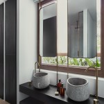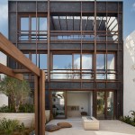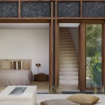 Inside, the palette includes travertine stone (for outdoor areas and bespoke fixtures, such as the rooftop’s jacuzzi); marble (for the front steps and bathroom sinks); and warm woods (for floors, cladding, window frames and cabinetry). Meticulously de-signed features such as the bathroom mirrors and sinks, were custom-made for the project. The front border fence is also bes-poke, a robust metal construction that at the same time feels as tactile and malleable as wood.