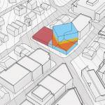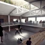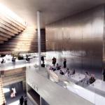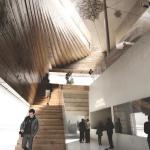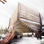 Copenhagen-based BIG’s new addition to the Kimball Art Center in Park City, Utah, expands exhibition space for the center, which serves as both a community hub and a theater for Sundance House, a screening venue for the 10-day Sundance Film Festival. “They wanted a landmark, but it [Park City] is, at the same time, a very tight-knit community,” says project leader Leon Rost. “We really needed to find a way to resonate with the history.” The addition comprises two stacked gallery spaces that can be used as screening rooms during the festival. The lower volume is oriented along the original city grid, but the upper volume is angled toward Heber Avenue, the newer gateway to the city. The addition’s walls are formed from stacked timbers—salvaged from a defunct trestle that crossed, and then collapsed into, the Great Salt Lake—that twist to accommodate the shift. “It has a textural quality,” Rost says of the wood. The building is targeting LEED Platinum, and has an expected completion date of 2015.