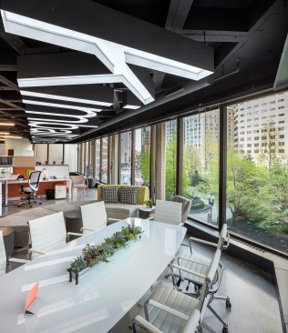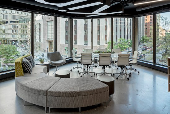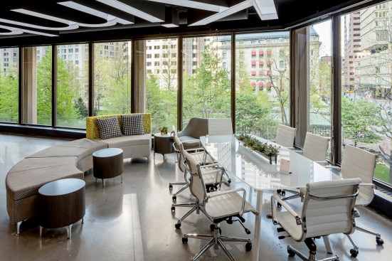 Kimball’s team found a space in the heart of the financial district in a 7-story office building that faces the venerated park in Post Office Square. Being on the third floor of the building, they saw the opportunity to pull the energy from the park through the building’s floor to ceiling windows into the space.