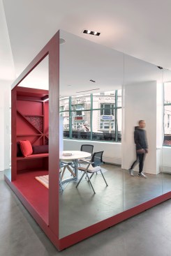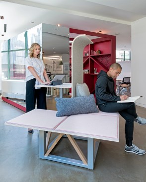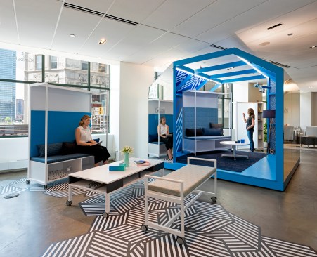 O+A’s third year designing Kimball Office’s showroom at NeoCon presented both client and designer with the challenge of making a familiar space new. Three iterations in three years of the same existing space initiated a contemplation on the meaning of place—specifically on how technology and modern communications have changed that meaning.