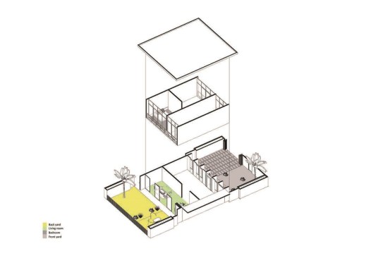 The 2 block-shaped rows of rows located on the flat part of the plot have front and back gardens, the backyard is a car parking area. It is possible to pass from the back garden to the front garden with a direct corridor without entering the house. The floor plans of each villa in these blocks are the same, but the 1st floor designs are different from each other. The first floor sits on the ground floor like a plinth and the design style changes in each villa, creating a facade specific to that villa. There is a balcony on the 1st floor between each villa. On the ground floor there is a kitchen, a living room, a servant’s room, and on the 1st floor there are 4 self contained rooms.