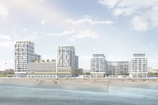 Haworth Tompkins and LA Architects designed scheme selected for regeneration of the King Alfred Site and Seafront, Hove, West Sussex.