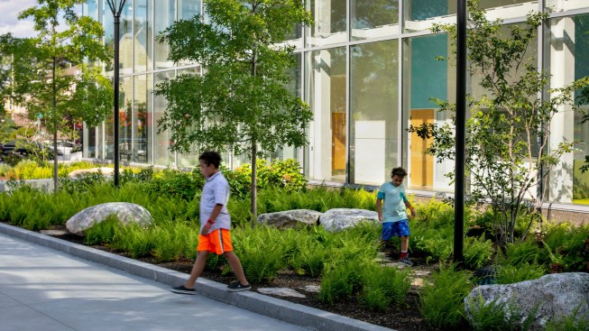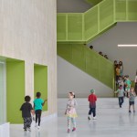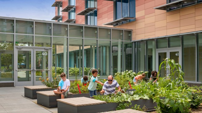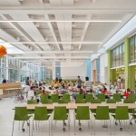 Starting in 2014, the community was engaged in the design process continuously from feasibility through construction. The design team held open visioning charrettes at school events, community picnics, senior centers, and sporting events to reach the greatest spectrum of the population. These groups included community members, businesses, faculty, and students who all directly influenced the types of programs and spaces within the final building and site. Physical models, diagrams, renderings, and virtual reality were presented for hands-on discussions. Result: A responsive design for a population heavily invested in the success and utilization of the project. The community feedback helped define the project’s programming. The project’s fundamental design intent was to provide a safe, inclusive, and equitable environment for young people and the surrounding neighborhood. The result blends two schools with community programs into a single complex, including outdoor resources such as a reading garden, bocce court, five playgrounds, swimming pool, civic plaza, and interior spaces like the public library, auditorium, cafeteria, and gymnasiums. The massing allows the community spaces to be available for after-hours and weekend use. The building’s varied program means many things to many people—a school, daycare, public library, pools, school district administration, and community center. Investing in a project that serves so broad a range of the community’s needs reflects respect for equity, diversity, and inclusion. The branch library and pools are prominently placed to send a strong signal to all to engage in their community resource and claim it as their own. Today, almost a year and a half after the building’s opening, the library circulation, programming, and patronage has rapidly increased. The City Preschool is fully enrolled and double the size of the previous facility. The community amenities – auditorium, cafeteria, and gyms have been drawing community groups for after hours and weekend activities. Client Testimonials: “The physical layout, natural lighting, net zero goal, and easy access to the outdoors all enhance the learning experience. In addition to the school day experience the campus has transformed the streetscape along the street highlighting the exterior grounds as a place for passersby to stop and soak up the fresh air and enjoy the beautiful landscaping.” – Jim Maloney, COO, Cambridge Public Schools “[The Citizens] are proud of the space, size, accessibility, and welcoming nature… a great example of the City’s commitment to enhancing the experience of residents when visiting our libraries.” – Director of Libraries “It was important to us that the school be open, bright, and viewed as an accessible partner to the wider community….and will invigorate us to think more creatively and collaboratively with caregivers about how to make this school a home away from home—a community center where you will want to be.” – Principal Manuel Fernandez, Cambridge Street Upper School