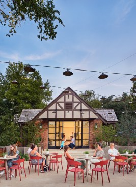 Built in the 1920s, the Tudor Cottage is one of the earliest park facility buildings constructed in Austin and sits on a bluff overlooking the southern end of the park. Originally built as a restroom, the cottage was transformed into an ideally-situated event space given its close proximity to park activities. Interior walls were removed to open the space up into a single room, and a new roof structure allows a vaulted ceiling to create a more expansive sense of space while maintaining its original structure. A north-facing glazed opening connects the interior to a large terrace overlooking the park.