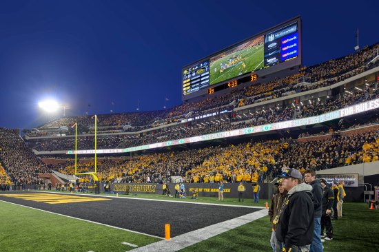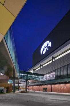 Between the two concourse levels an enclosed 17,000-square foot premium club level has a spacious concourse lined with large backlit photos of Hawkeye game-day experiences. The area includes private restrooms, high-definition televisions, a private entrance via a new skywalk, and a commons area that will be used to host business meetings and other gatherings on non-gamedays.
