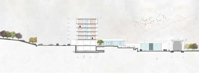 The new Congo Kintele Congress Centre is built in a newly developing area of Brazzaville, to the north of the new Olympic Centre. The site has panoramic views of the Congo River to the south and a forested unbuilt landscape to the north. The topography of the site is a valley carved out by the great Congo River which creates M’Bamaou island in the foreground and the buildings sit parallel to the contours of this valley sloping down to the river.