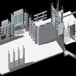 Tasked with providing shelf space for a client’s extensive library, Mark McInturff, FAIA, and project designer Colleen Gove Healey devised a modular intervention that left existing walls essentially undisturbed. The system starts with doubled-steel-angle uprights, infilled with cherry, which support glass shelves separated by aluminum-plate spacers. Fixed at floor and ceiling, the assemblies proved highly adaptable. “Every time we came up with another thing to do, we looked back at those bookshelves,” says McInturff, who used the same system to support work and seating surfaces and an aluminum-faced cabinet that houses a gas fireplace and television.