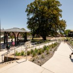 As part of their commitment to “put a quality park within a 10-minute walk of five million people who currently lack access by creating new parks or transforming underutilized parks in the communities of greatest need and by activating local and national partnerships,” the Trust for Public Land worked with the City of Wenatchee to revitalize Kiwanis Methow Park in Wenatchee, Washington. Building on the deep community engagement that TPL had begun, Fivedot worked with Site Workshop to understand the deep history, desires and needs of the predominantly Latino community in South Wenatchee. The project team worked with the community to design an 874-square-foot kiosko to anchor the new park and provide a visual point of cultural identity for the community. The deep overhangs shade casual gatherings during the week while the graceful steel arches frame mariachi performances in the evening. Murals on the concrete benches were done by Claire Barnett with Seattle Mosaic using designs originating from the artist led workshops where community members created the various plates which were installed. Wenatchee artist Terry Valdez led the visioning and coordination for these efforts.