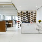 The interior extends the design language developed for the New York and San Francisco showrooms with a palette that is specific to the Texas locale. Like these showrooms, the Houston space is organized by a sculptural metal rail, in this case brass, that displays a changing selection of Knoll textiles that frame varied office and showroom spaces. The open floor unites showroom with varied flexible work spaces; private office, conference and pantry areas are located in the center of the floor plan, with glazed office fronts that allow for visibility and borrowed light.