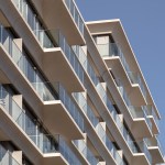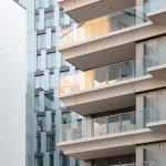 Regardless of its large dimensions, the building presents itself light and open through its room-high, generous window fronts and an openly designed, flat glazed ground floor. The lavishly designed, cove-like cornice strips made of coloured architectural concrete form a flowing line with the balconies, loggias and floor-to-ceiling windows and lend the facade matrix additional plasticity and tension. The horizontal emphasis is supported by the narrow continuous parapets, which together with the rhythm of transparent and opaque glass elements give the volume an unmistakable character.