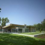 In designing the Kohout Residence, architect Kirk Blunck, FAIA, faced a subdivision design code that read like the recipe for a classic McMansion. “Roofs pitched at 45 degrees, double-hung windows, wood shakes … it was very prescriptive,” says Blunck, who nevertheless persuaded the powers that be to permit a house that violated most if not all of its guidelines. His low, butterfly-roofed design also represented something of a leap for its owners: from the French country style of their previous house to a spare modernism that directs attention outward, to the South Dakota prairie landscape. But durable, unadorned surfaces simply make sense for an active family with four children and two dogs, and an open-plan layout keeps adults and children in touch with each other and the outdoors. “Somewhere along the way,” says Blunck, “they decided that they were so busy with careers and kids that they should have a house that made their lives simpler and more connected.”