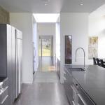 Blunck echoed the horizontality of the prairie landscape with local white cedar siding and the shadow lines of the concrete work, achieved by fixing 1x4s in a randomized pattern to the inside of the forms. The house’s massing and trimless modernist details generated “some angst” on the design review board, Blunck says, but in time he found the group commendably open-minded. “We said, ‘We can do sloped roofs, but we’ll slope them to the interior rather than the exterior,’” he says. “They kind of raised their eyebrows,” but they ultimately agreed. “People only know what they’ve seen or experienced. Our job is to widen that field of vision.” And if the board were concerned about his clients building a dog that would damage property values in the neighborhood, Blunck says, they needn’t have worried. “There were three different people trying to buy it from them before they even moved in.”