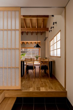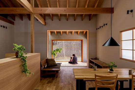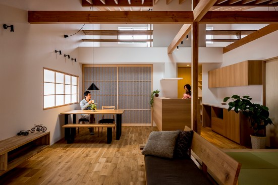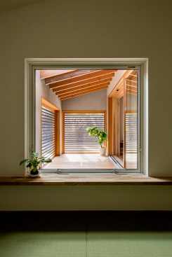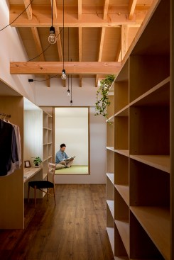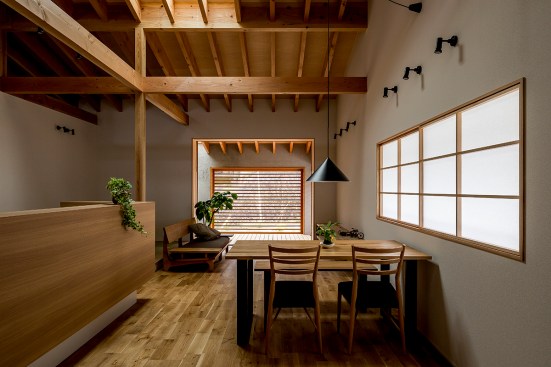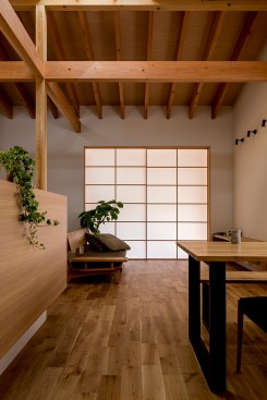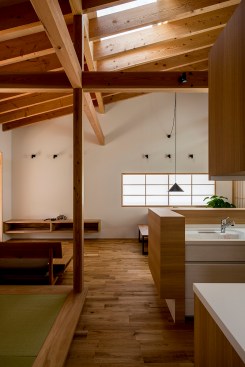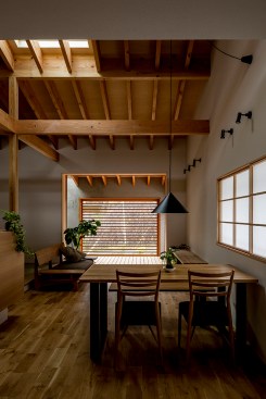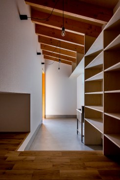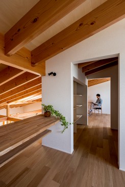 I maximized the site location. Concretely speaking, I arranged big roof in a north-south direction, and minimized the number of walls to meet the keyword of “every family under one roof”. I arranged other rooms but rooms for children in the future in the first floor. The house like a one-story building became one symbolic building in the area.