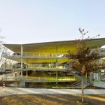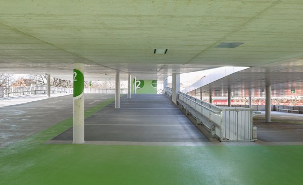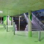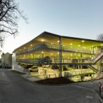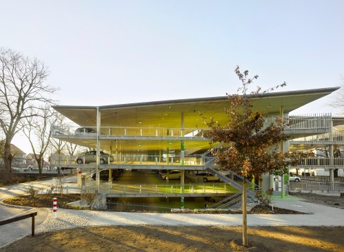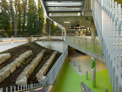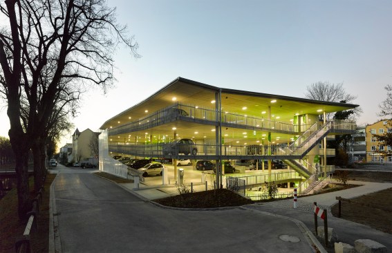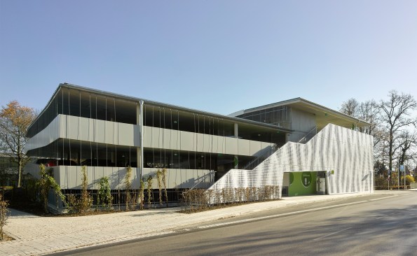 Offering over 165 parking spaces, this new public garage at the city’s center was built at the City Hall area in Kolbermoor. It establishes a dialogue between City Hall to the east and a planned mixed-use residential and commercial building to the north as it organically links the winding paths of the park that connect it to the adjoining areas. Located at the intersecton of Ludwigstrasse and Friedrich-Ebert-Strasse, the structure marks the gateway into the inner city of Kolbermoor.