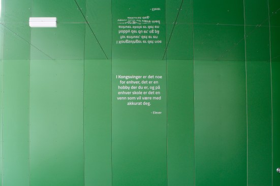 Two major advantages of Steni panels are that they have very good corner details, and that there are no limits to creativity when it comes to colors, shapes or structure,” says Lekven. “In fact, some of the Steni panels feature quotations contributed by the students.”