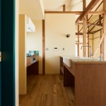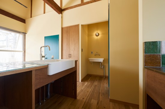Another request from the client regarded the interiors: he wanted his house to look like a Studio Ghibli movie. Among the vast catalogue of acclaimed films published by the studio, two were chosen as reference for Koshigoe House: The Secret World of Arrietty (2010) and When Marnie Was There (2014), both of which feature colourful interiors and a predominance of wooden texture emerging above all.