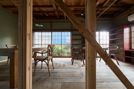 Koshigoe House retains a duality on the inside: the darker but welcoming public space on the first floor is opposed to the fresh discreet apartment above.