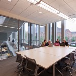 The Krach Leadership Center is a new type of academic building that provides space for student organizations to meet and collaborate, as well as a wide range of spaces in support of student life. Learning, discovery, and engagement are facilitated by the Center, which catalyzes interactions and relationships between faculty, staff, and students and inspires leadership on campus. The first floor of the Krach Center is conceived of as the Main Street of student life—a public space that provides the opportunity to meet, relax, and interact all hours of the day. The second floor provides more formalized, but flexible space for student organizations. The third floor hosts student organizations services such as Student Leadership Development, Boiler Volunteer Network, Student Activities and Organizations, and the Business Office for Student Organizations. The fourth floor houses the Student Access, Transition, and Success programs and the Academic Success Center. Tutoring rooms and satellite locations of existing academic help centers further support students.