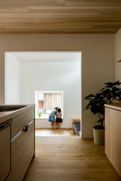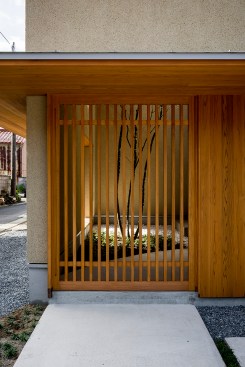 This house is located along old streetscape in “Minakuchi-juku”, which is one of Fifty-three stages of the Tokaido. Although, it was consolidated during the Edo Period. The community road and the space are narrow, so it’s impossible to make large space between the road and the house, and it’s difficult to build a house in the southeast in spite of the corner location in the northeast, which is good site location. So, I arranged inner garden in southeast. In doing so, I not only solved the problem point concerning the ground, but also made rich living climate.
